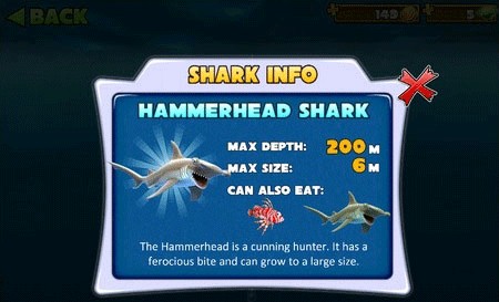可捕获的猎物:红色尖刺鱼 锤头鲨
