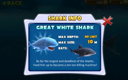 小编推荐:系统默认的鲨鱼,初始血量少,而且速度较慢,会被很多的鱼类攻击,不实用。