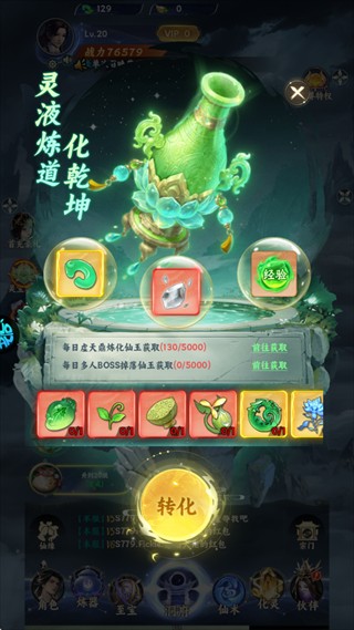 4、在左侧灵液转化将材料转化为灵玉。