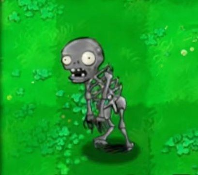 1、骷髅僵尸:该僵尸可以在水路出没,可以下水,但水中不会留下坑洞,血量500,速度慢。