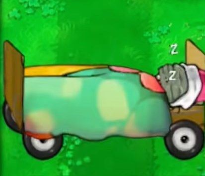 3、床车僵尸:速度快,免疫减速与冻结,佩戴帽子,血量500(帽子)+270(本体)。