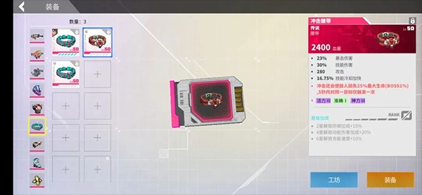 7、鞋子选择异常鞋子,劳拉能打出的异常还是挺多的,有冰缓,减速,感电,破甲,动能套还有眩晕加一起50%的伤害加成非常恐怖。