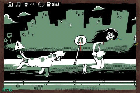 第五关:狗追着咬,看到一个翻转的路牌,就变成了 ELLA 追狗跑。
