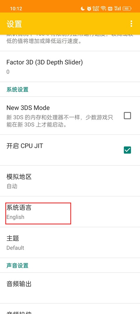 3、点击系统语言,模拟语言默认一般为英文。