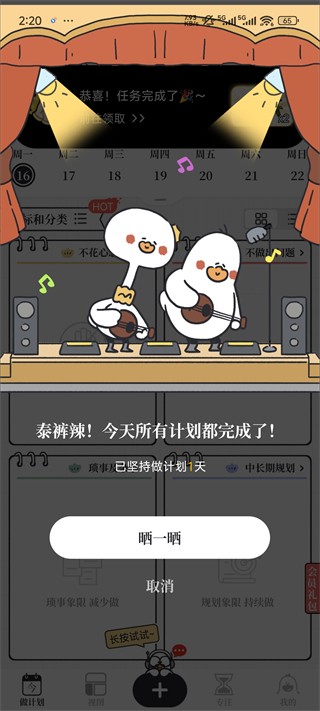 2、待圆圈打上勾后即代表该计划已完成。