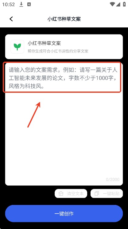 用户们可以在对应模版下输入自己想要得到的文章主题和字数,再点击“一键创作”