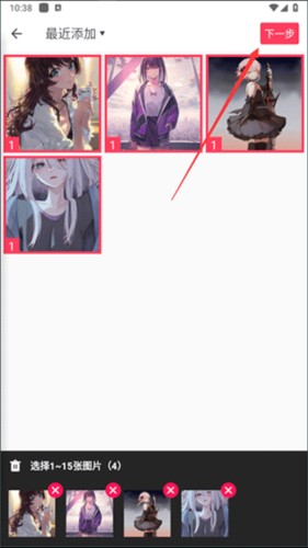 3. 在此以“自由拼图”为例(若用户喜爱也可选择“模板拼图”)。挑选好需要拼接的图片后,点击“下一步”。