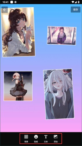 5. 用户还能够直接点击背景,对其外观进行更改,或者添加一些贴纸、文字等内容。