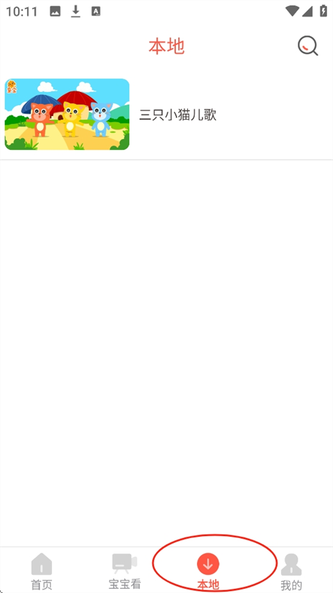 3、返回主页面,在下方找到本地,就能在里面看到自己下载的儿歌视频啦