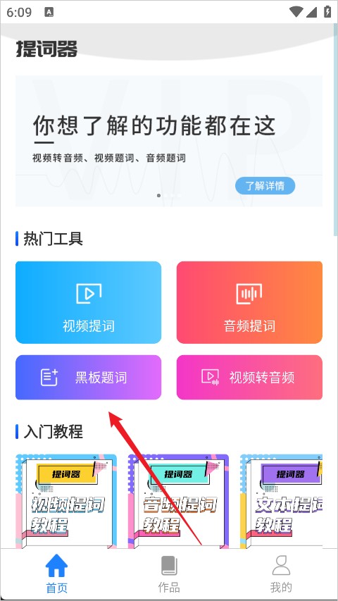 1、打开梦音提词器正式版,进入到App首页,点击“黑板题词”即可创建台词