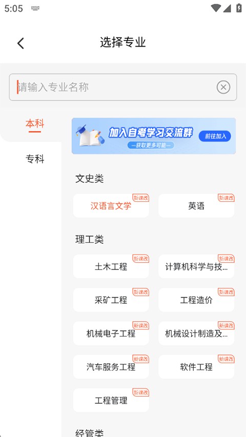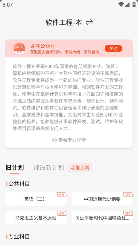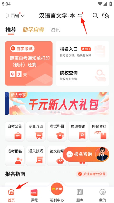 1、打开自考网APP,点击首页-屏幕顶部的专业切换按钮;