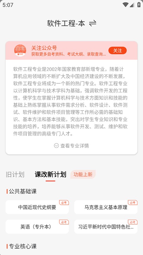5、点击课改新计划,查看公共基础课和专业核心课程等。