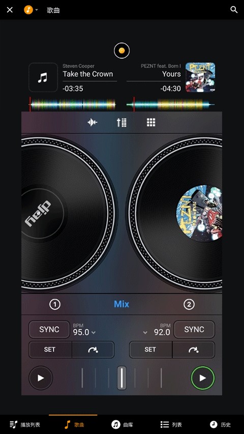 4、添加好音乐后就开始打碟啦。