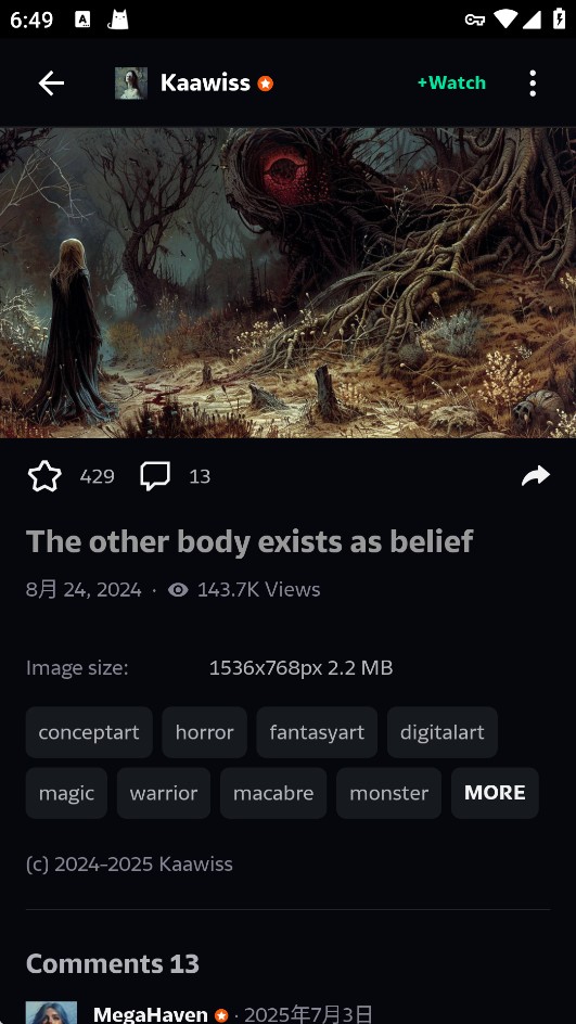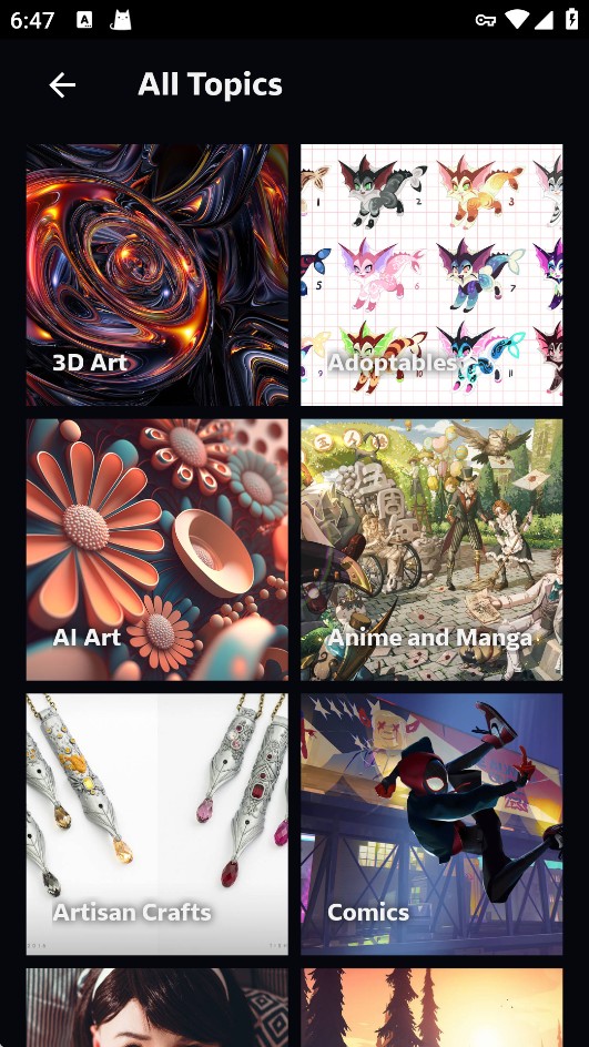 DeviantArt中文版是一款艺术社区平台软件。软件为用户提供展示的平台,各种类型的艺术作品都能上传并得到展示,还能再评论中与其他用户讨论和交流经验。且软件还有AI艺术创作和接稿等功能,满足用户实用需求。需要的用户赶紧来下载吧。