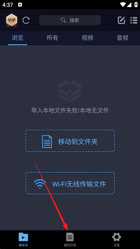 1、打开万能电影播放器安卓版,点击【播放列表】