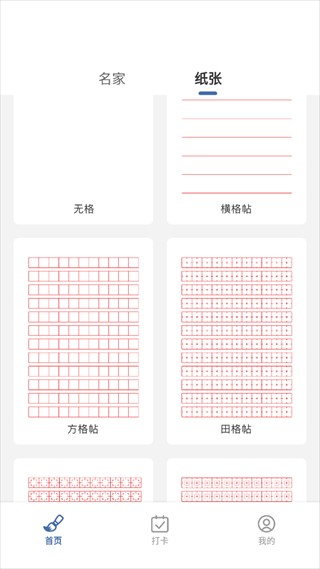 2、纸张栏目则是提供各种各样的练字字帖。