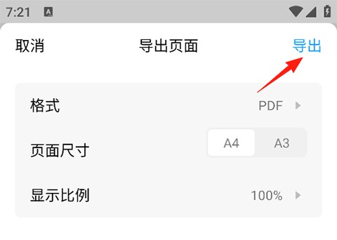 3、选择格式、页面尺寸、显示比例,点击保存;