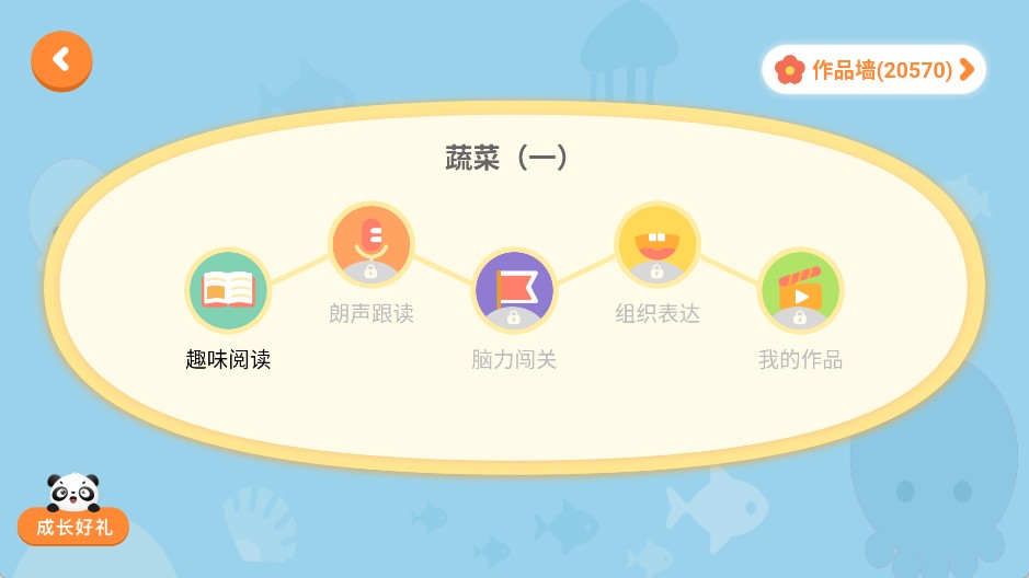 2、每本绘本都被科学地划分为多个学习阶段,宝宝将从基础的“阅读识字”环节开始逐步解锁;