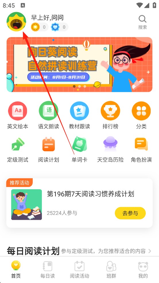 点击向日葵客户端-跟读进行向日葵阅读绘本录音,语音识别可以实时反馈你每个单词的发音表现,按页完成全部句子的录音后可查看完整的跟读报告、包括表现最佳以及需要改进的单词、句子。记得将你的录音成绩分享给好朋友哦!