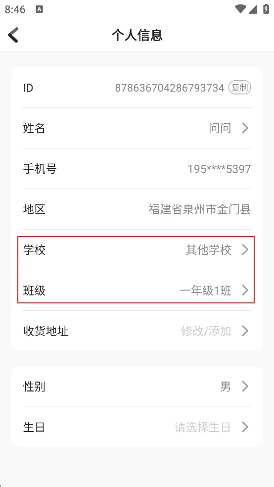 3、点击修改学校和班级,还可以修改地区