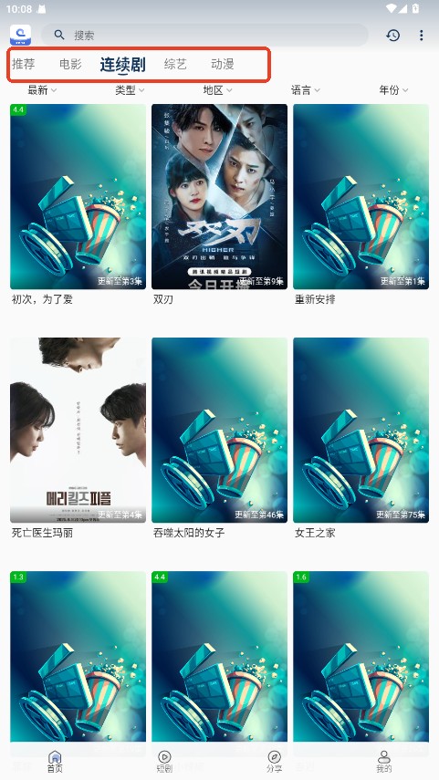 2.通过电影、电视剧、动漫、综艺等分类快速定位想看的内容。
