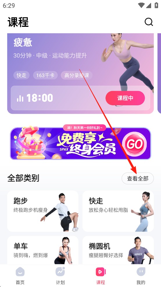 2、点击查看全部,选择你想要跟练的课程