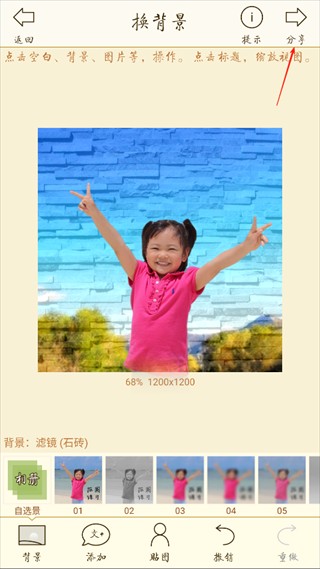 7、选择心仪背景后,点击【分享】即可