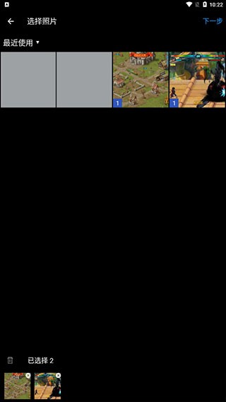 4、当然最重要的就是这个拼图,选择两个照片,点击下一步
