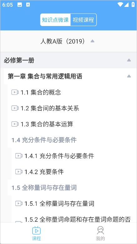 2、切换到课程页,这里为用户提供了各类新版教材内容,你还可以在最上方进行知识点微课专区和视频课程专区的互相切换。