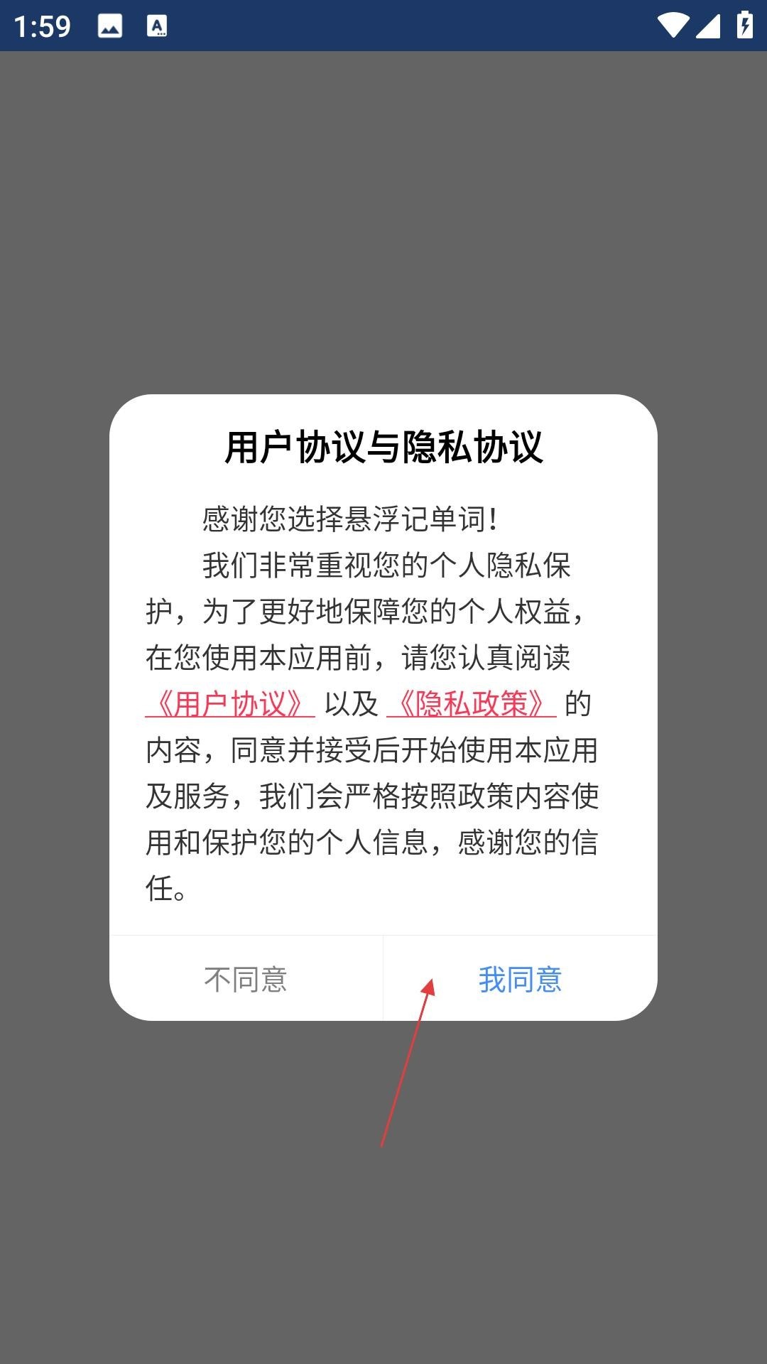 1、下载安装完成后进入,需在用户协议和隐私政策界面点击同意,接受相关条款后才能进入应用。