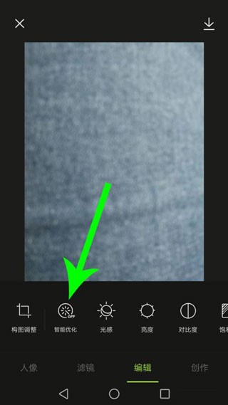 2、打开编辑界面以后点击“智能优化”,让图片变得清晰。