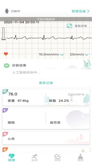 3、在健康板块可以查看各种心电图的历史记录,还支持AI分析,方便用户查看。