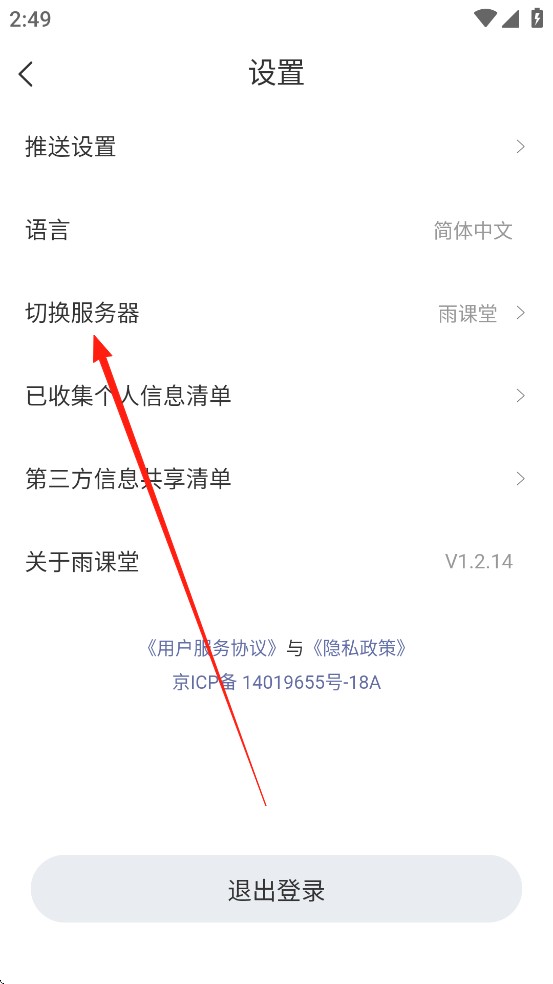 3、然后选择切换服务器