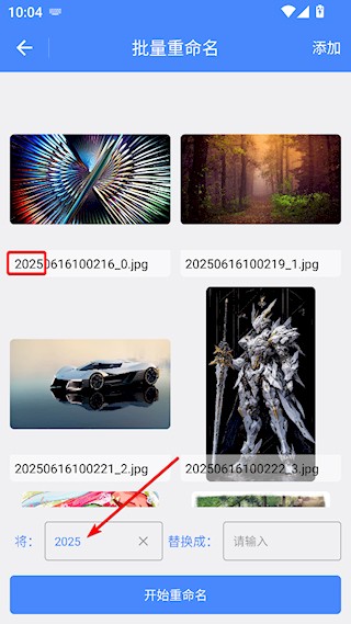 3、输入替换字段后,能实时预览效果,点击开始重命名执行替换操作