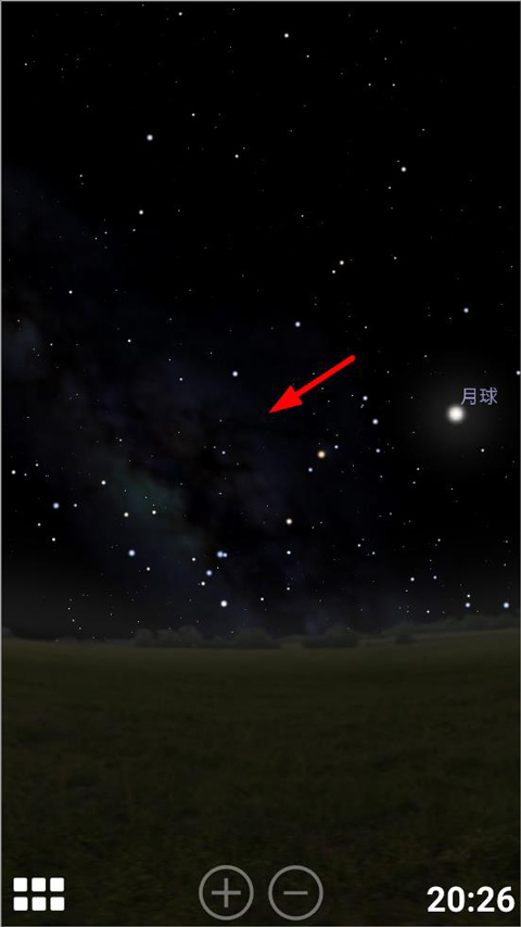 2、用户点击软件中的缩小按钮将天空页面缩小,即可在月球左侧看到隐约的银河影像;