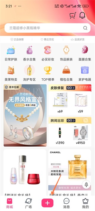 1、打开美哩2025商城板块可以购买物品,点击下方的【+号】