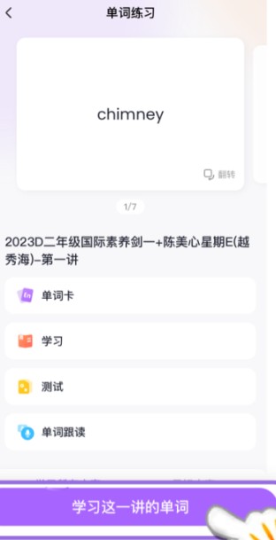 先点击展开讲次的内容找到【单词练习】和【课文跟读】【课程资料斗】