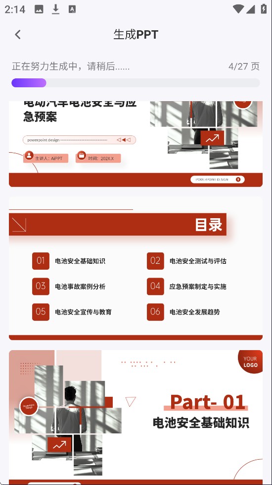 3、接入智能大数据模型,为用户智能生成专属PPT。