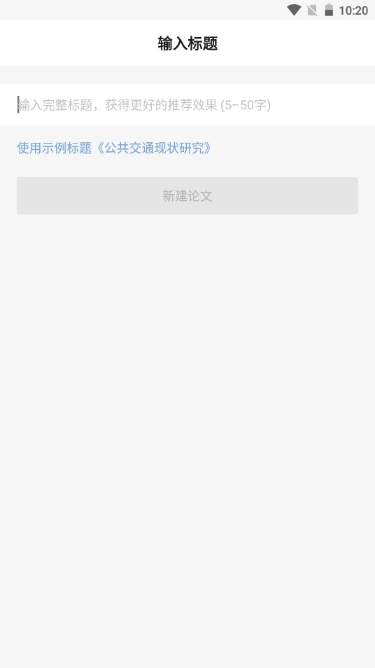 1、首先,用户在本站下载并安装好app后,打开进入,成功登录以后,输入完整的标题(5—50字),然后点击【新建论文】;