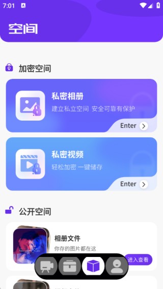4、在空间页面,主要管理加密空间和公开空间,满足不同存储需求。