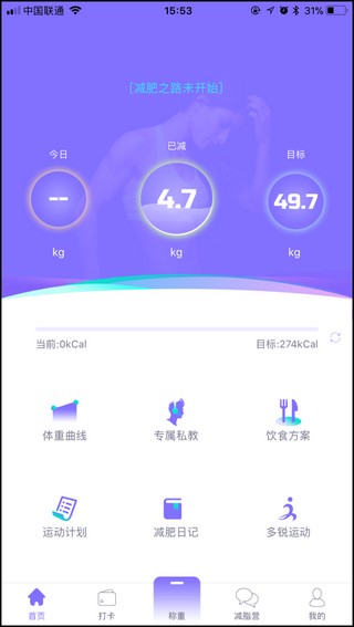 5、最后便可以看到你想要的减肥运动计划啦,旁边还有减肥日记、专属私教等功能,其实更重要的还是自律啦