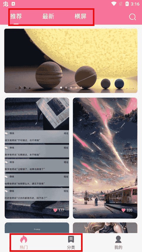 接着,选择你喜欢的壁纸类型,或点击搜索框直接搜索更精准更快速