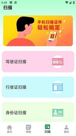 3、点击扫描还可以进行驾驶证、身份证的扫描一键转换为电子档。