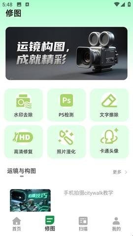 2、点击修图,用去水印、照片修复等多种功能都可以直接使用。
