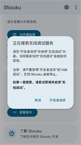 1、第一步手机中安装并打开shizuku(这是一个能让你不root也能让你搞机的神器),配合安卓10以上的无线调试功能(手机进入开发者模式,一般手机设置界面中关于手机中连续单击版本号进入开发者模式)