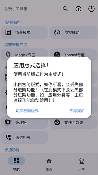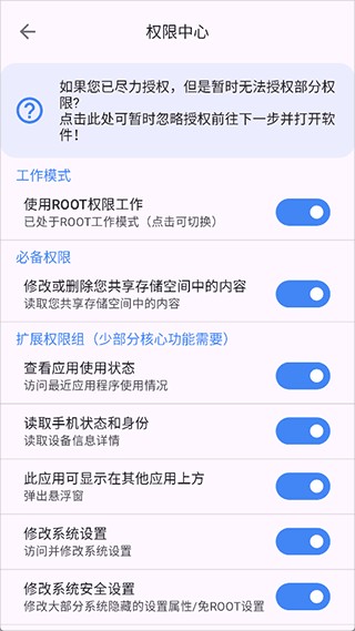 4、接着我们打开爱玩机工具箱就可以将所有权限打开,然后就可以激活它,进入软件界面了