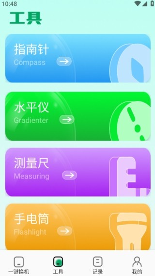 2、提供超实用的工具箱,如指南针,水平仪,测量仪,手电筒等等。