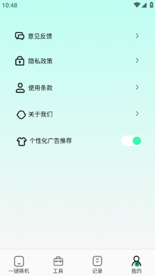 4、支持意见反馈,为用户提供适用条款,使用中可以开启或关闭个性化广告推荐。