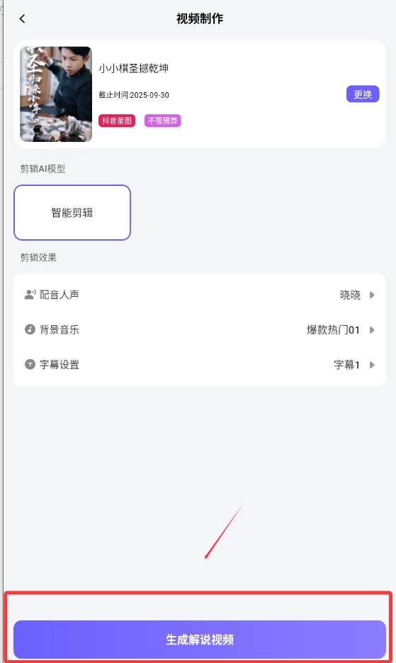 3、按照选项制作生成解说视频即可。