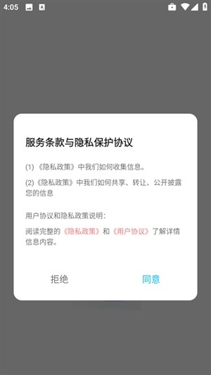 2、打开进入软件,点击同意隐私协议